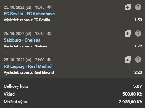 Sázející s nickem jdudis vsadil na tři úterní zápasy Ligy mistrů.