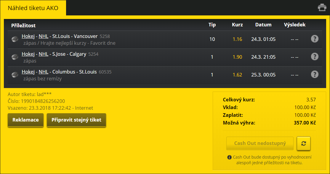 U každého tipu uvádíme datum a čas začátku zápasu, přesné znění tipu a nejvyšší nabízený kurz na českém trhu (+informaci o tom, která sázkovka tento kurz nabízí). Nejvyšší nabízený kurz nám pomohl najít náš vyhledávač nejvýhodnějších kurzů. Pokud chcete sázením vydělávat co největší množství peněz, doporučujeme vám používat tento nástroj také.