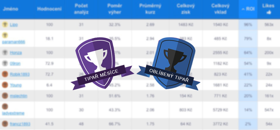 Pravděpodobně vám neuniklo, že na našich stránkách probíhá soutěž, ve které tipaři měří své znalosti a dovednosti prostřednictvím sázkových analýz. Kdo přitom dosáhne nejvyššího ROI (tedy návratnosti investic), odnese si od nás peněžitou výhru.