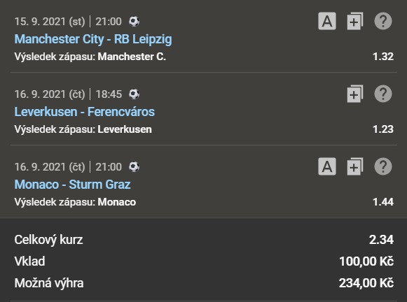 Následující tiket obsahuje tři sázkové příležitosti a patří k nejčastěji podávaným sázkám v českých sázkových kancelářích. Kurz je 2,34. Budeš věřit v moudrost davu a vsadíš si s námi?
