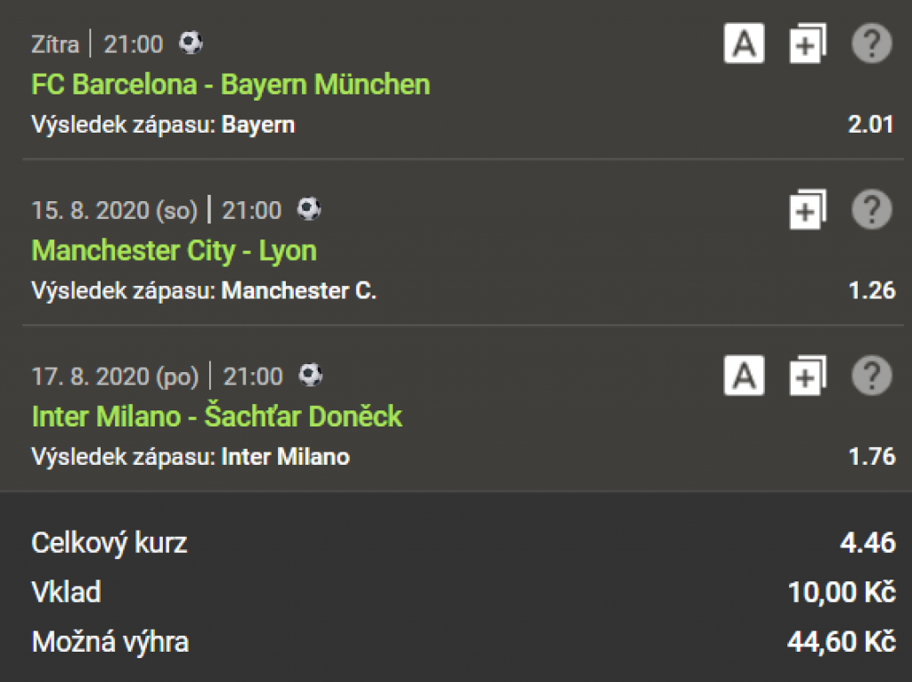 Na následujícím tiketu vám představíme 3 týmy, které sázkaři v českých sázkovkách volili nejčastěji. Řídíme se tak jevem známým jako moudrost davu. Pokud jste i vy přesvědčeni, že víc hlav víc ví, potom si nezapomeňte taky vsadit!