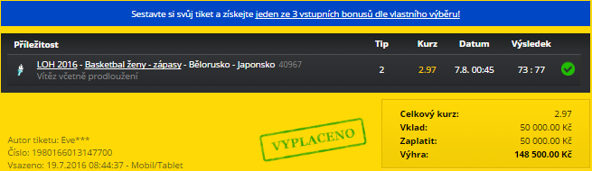 Stále navíc trvá naše výzva vůči vám, našim věrným čtenářům. Pokud se vám v poslední době podařilo složit vítězný tiket, který je něčím zajímavý (vyhráli jste mnohonásobně větší částku, než jste vsadili, vsadili jste 10 remíz a všechny vyšly, a tak podobně), sdílejte je s námi! Učinit tak můžete v komentářích pod článkem nebo na našem Facebooku. Možná právě ten váš vybereme do dalšího dílu. Zároveň budeme rádi, pokud s námi budete sdílet zajímavé TOP tikety, které sice třeba nejsou přímo vaše, ale narazili jste na ně na internetu a jste přesvědčeni o tom, že by v našem novém seriálu rozhodně neměly chybět.