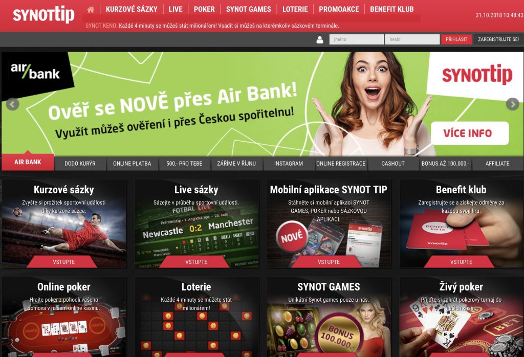 1.4.2019: SYNOTtip nově nabízí doregistraci přes internet banku MONETA … více zde.