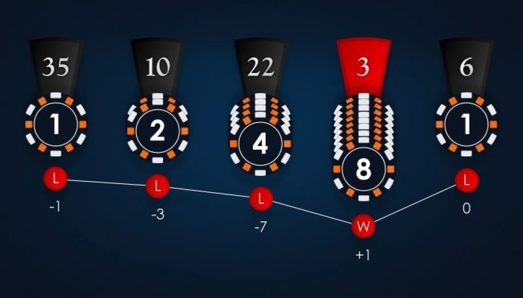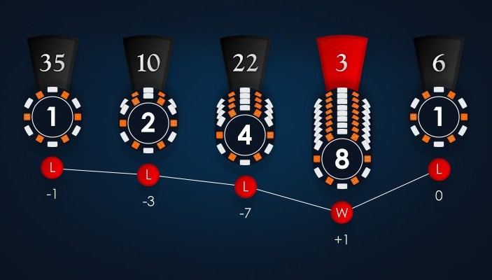 Tímto způsobem jsou po každé výhře vynulovány předchozí ztráty plus se dostanete k vytyčenému zisku (více v následující sekvenci točení na ruletě).