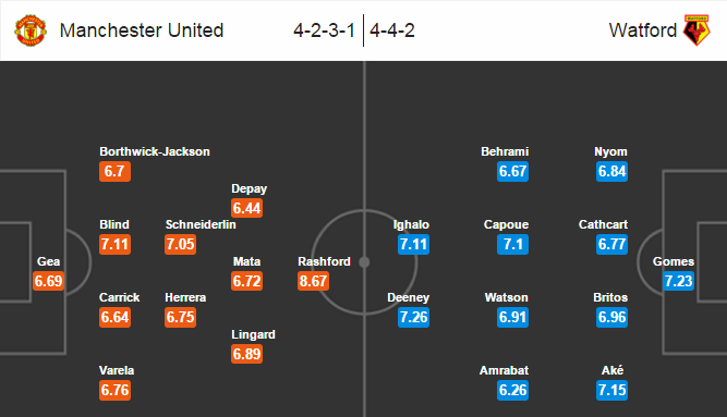 Z pohledu Manchesteru United vypadá nyní vše růžově; “Ďáblové” postoupili do další fáze FA Cupu a minulý týden v rámci Evropské ligy doslova smetli FC Midtjylland (5:1), aby v neděli porazili v rámci PL konkurenční Arsenal (3:2). Navíc pro United hovoří i forma nového objevu, Marcuse Rashforda, který ve 2 utkáních vstřelil 4 branky a plnohodnotně tak zastupuje zraněného Rooneyho.