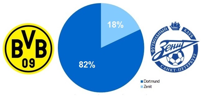 Dortmund si věří poté, co dokázal přežít ve „skupině smrti.“ Borussia ale potřebovala zimní přestávku ještě zoufaleji než Bayern, ať už kvůli dobití baterek nebo kvůli přeplněné marodce. Naopak Zenit je kvůli přestávce v nevýhodě, jelikož ruská liga znovu startuje až v březnu. Nedostatek zápasové „ostrosti“ ruské a ukrajinské týmy trápí už několik let. Dortmund by měl bez větších problémů postoupit.