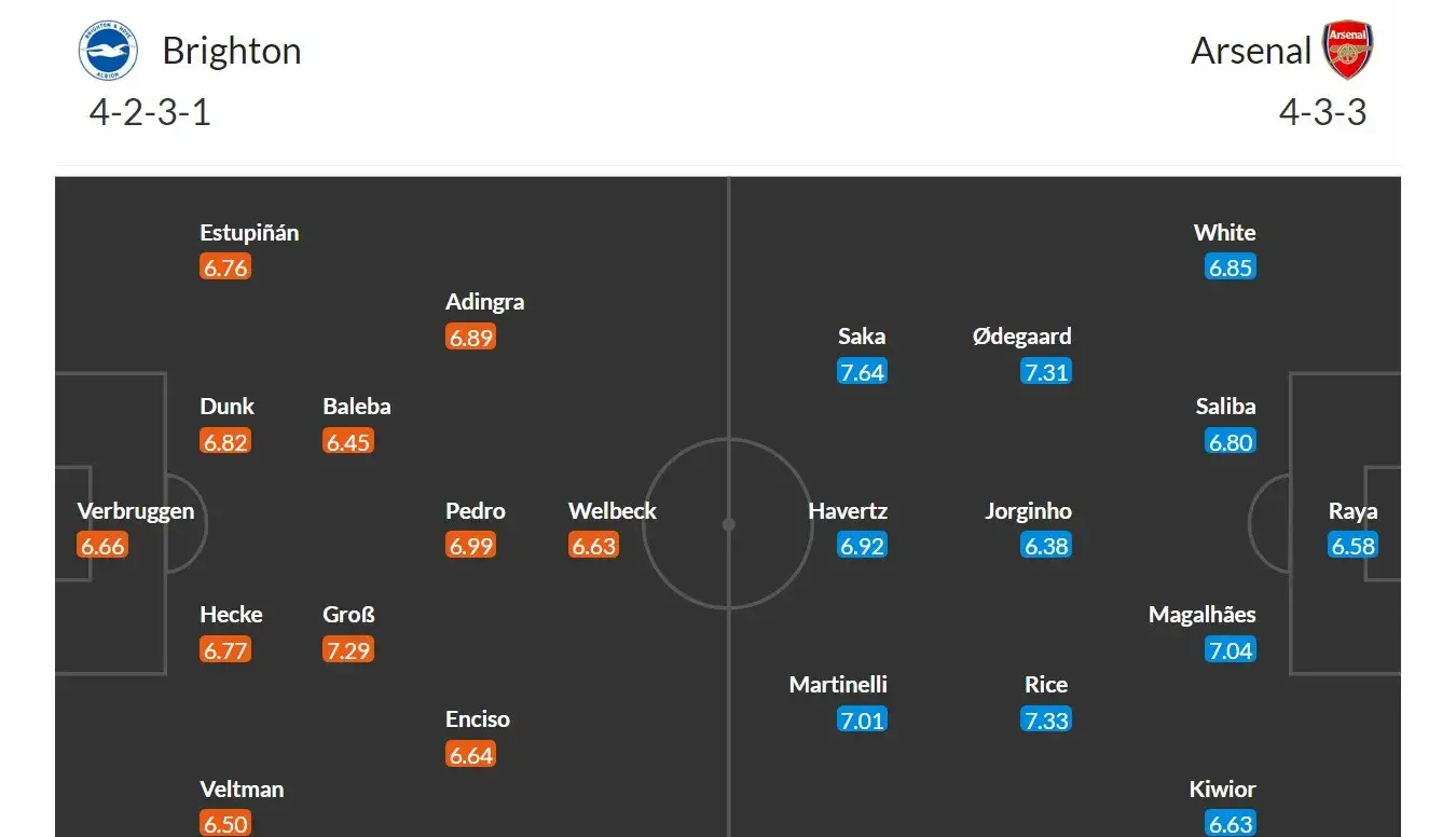 Brighton má nyní je jedno ligové vítězství z pěti. Minulý víkend nestačil na Anfield na Liverpool, v týdnu zase na Brentfordu remizoval. Seagulls jsou na deváté pozici a účast v evropských pohárech se jim velmi vzdaluje. Arsenal v týdnu uspěl s Lutonem a v roce 2024 má na kontě 9 výher z 10 možných. Příští týden ho čeká čtvrtfinále Ligy mistrů s Bayernem, ale na Amex Stadium nemůže polevit a jede si sem pro tři body.