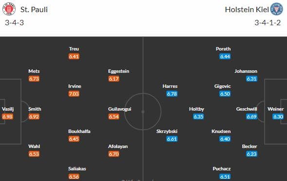 Kdykoliv se aktuální ligoví nováčci St. Pauli a Kiel za poslední 3 příležitosti utkaly, skončilo to góly na obou stranách, v součtu alespoň 6 přesnými zásahy a výhrou St. Pauli. Hamburský celek bude mít v pátek večer výhodu domácího prostředí, a i v dosavadním průběhu sezony 2024/2025 si vede líp, když zatím vybojoval o 3 body víc než hosté.