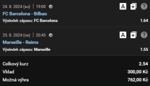 Sázka na víkendová vítězství dvou tradičních klubů, jejichž hráči do nových ligových sezón vstoupili velmi dobře, konkrétně na vítězství Barcelony v čele s Lewou a Yamalem proti Bilbau a na vítězství Marseille proti Reims. Z těchto dvou tipů se skládá další Zdenův tiket se dvěma detailně rozebranými zápasy s hodnotnými kurzy a s tradičním vkladem 300,-Kč.