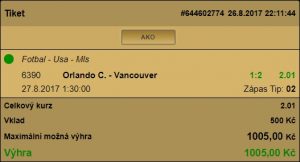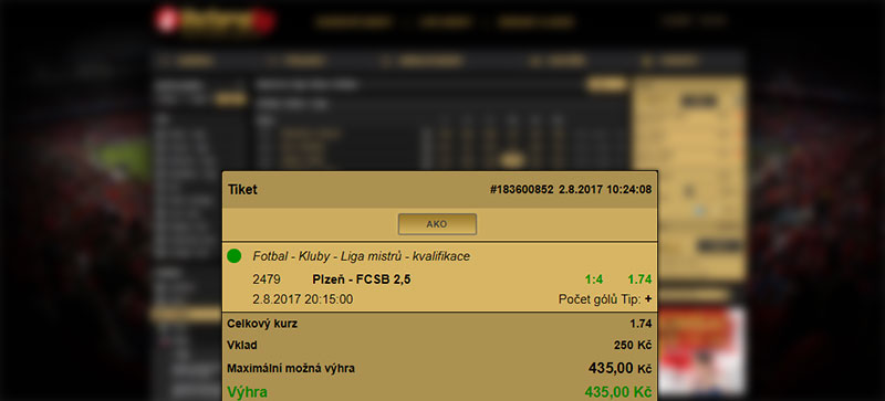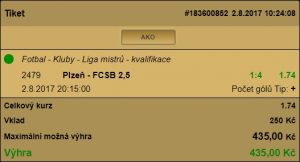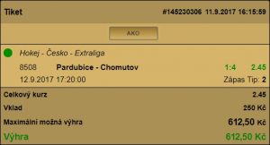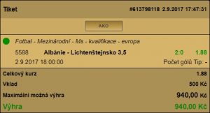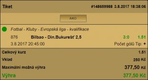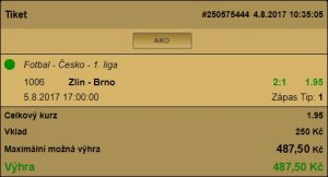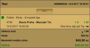 Po 3 kolech jsem měl dostatek peněz, abych si troufl sázku zvýšit na 500 korun. Těchto 500 korun jsem postupně vsadil na 4 sázkové příležitosti – tzn. 500 korun na tiket.